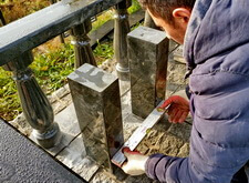 Переходим к созданию надписи. Вырубаем её на граните, затем покрывает акриловой краской. Такой вариант является отличной альтернативой покрытию сусальным золотом, который, к тому же, обходится клиенту значительно дешевле.