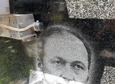 Затем, периодически поливая гранит водой, постепенно увеличивали мягкость насадок, пока не сделали бывший портрет не отличимым от остальной поверхности.